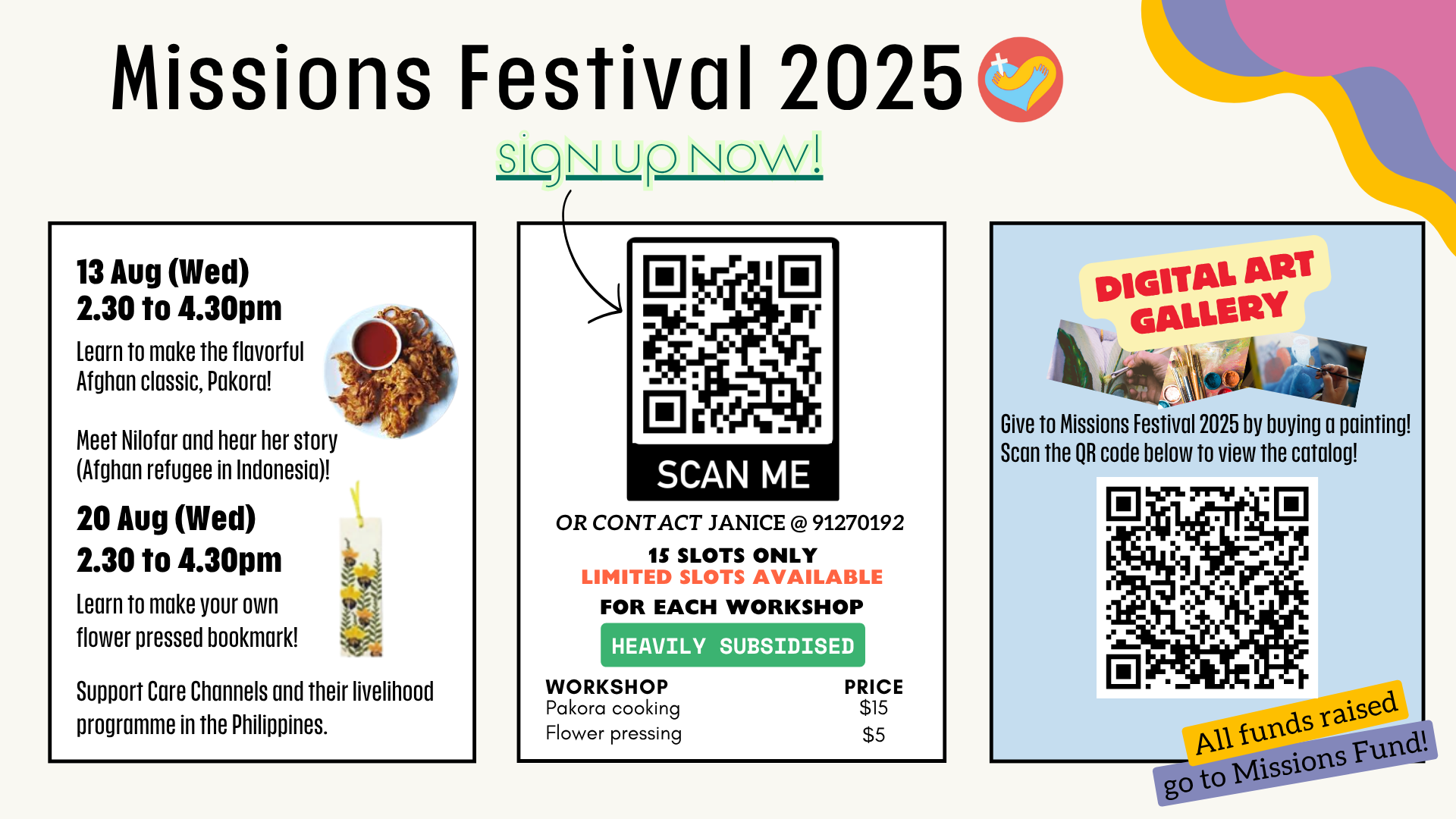 Clementi Bible Center 152 West Coast Road, SingaporeRegistration is now open for Easter 2026 Baptism, Transfer of Membership, and Reaffirmation of Faith. If you have been worshipping with us regularly for at […]